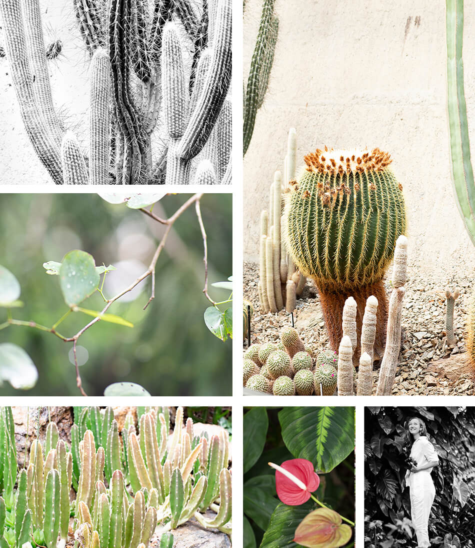 top left to bottom right: 1. Cactus plant photograph taken in Brisbane 2. Botanical Gardens cactus 3. peaceful nature green leaves floating in the soft light 4. A rebirth cactus 5. Red Peace Lily organic shapes 6. Self portrait of me at the Botanical Gardens, Brisbane.